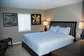 furnshings and electronics, featuring a king-size bed in the master
