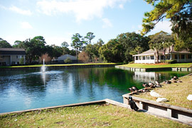 scenic duck pond and picnic areas on the property.